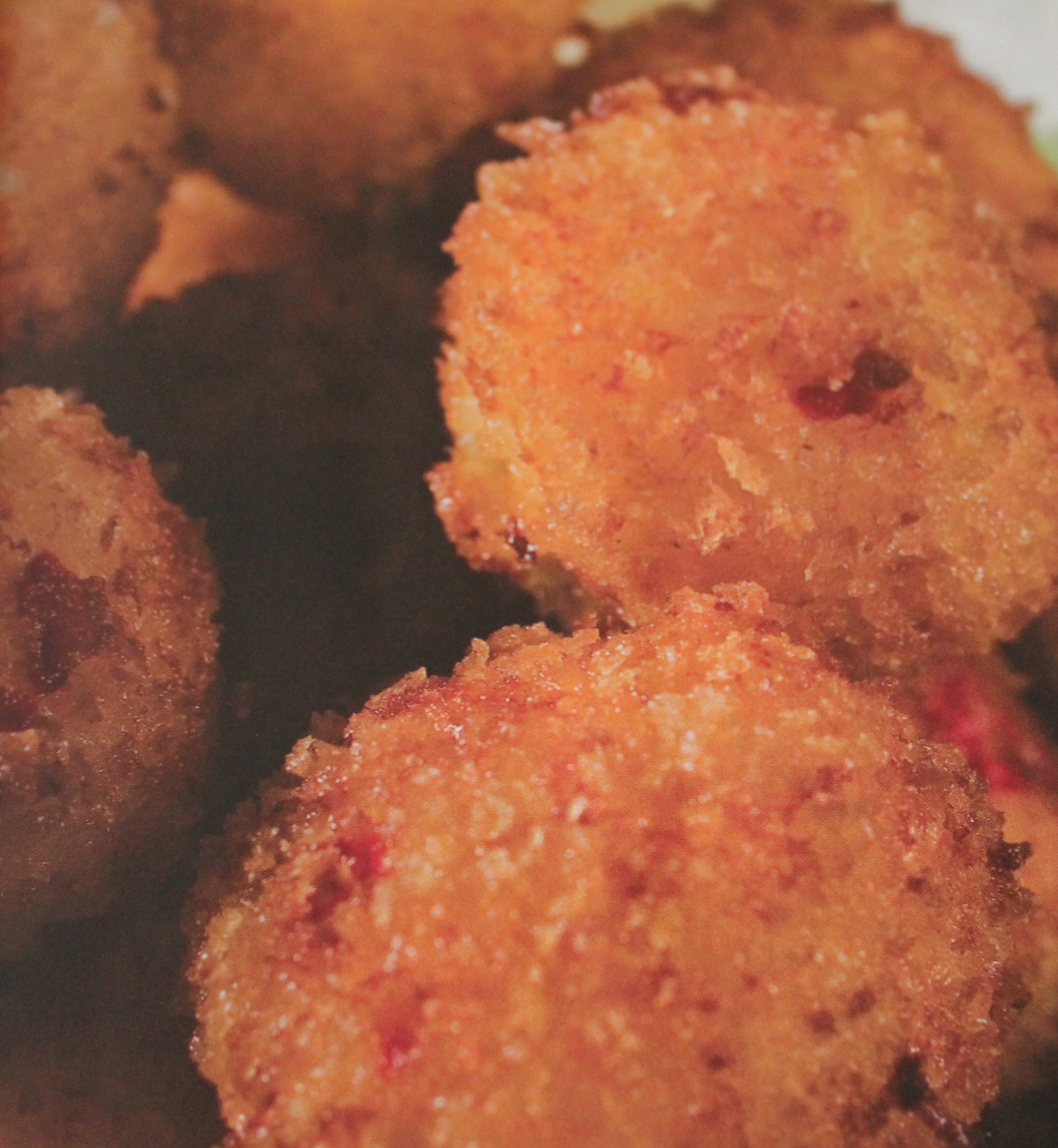 3. Fill a Dutch oven will 2/3 oil and heat to about 350 over medium heat. Fry the Cheddar balls until lightly browned. You can do 4 to 5 balls at a time.