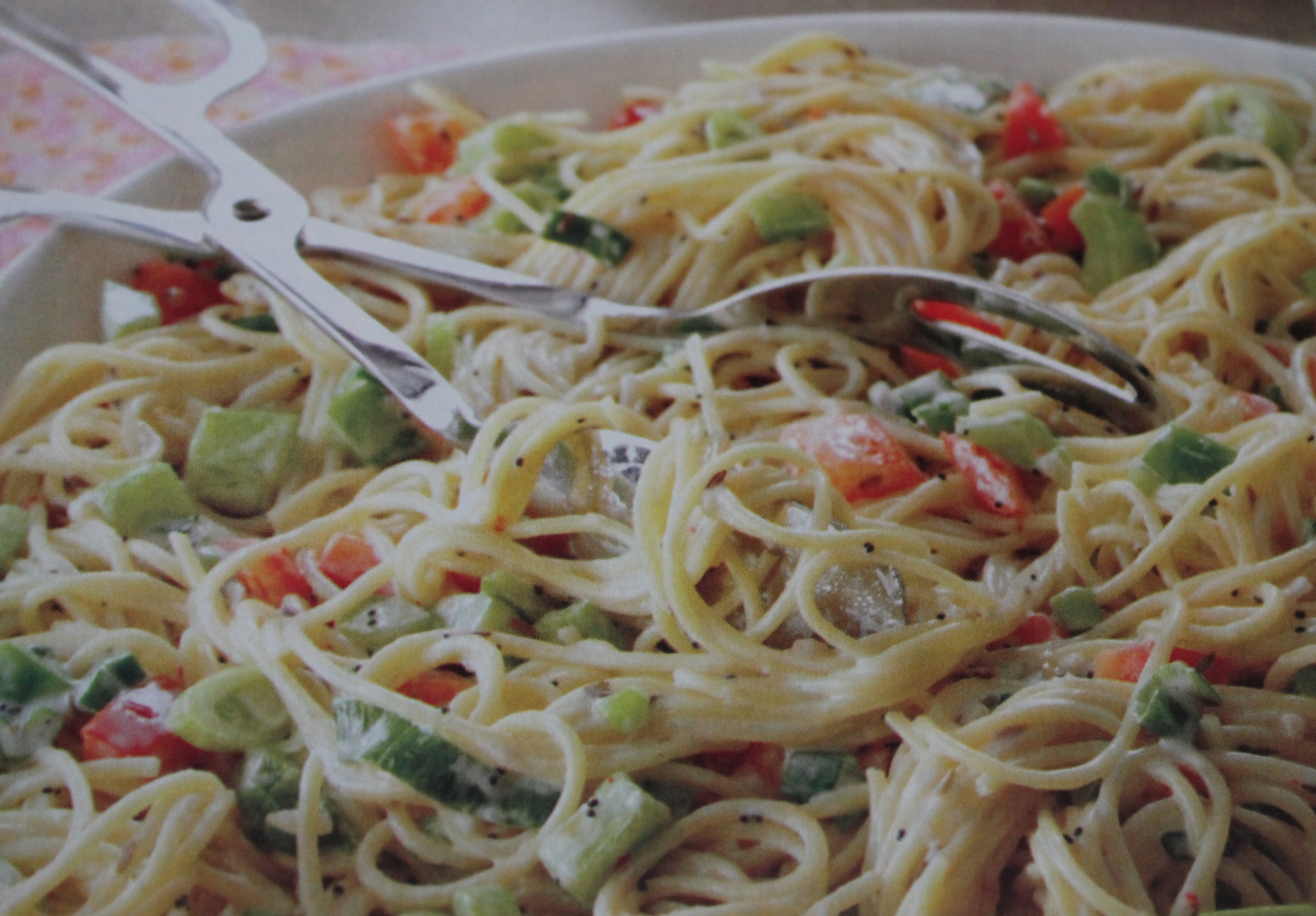 1. Cook pasta according to package directions. Drain:; transfer to a large bowl. Add remaining ingredients; toss to coat. Refrigerate until cold.