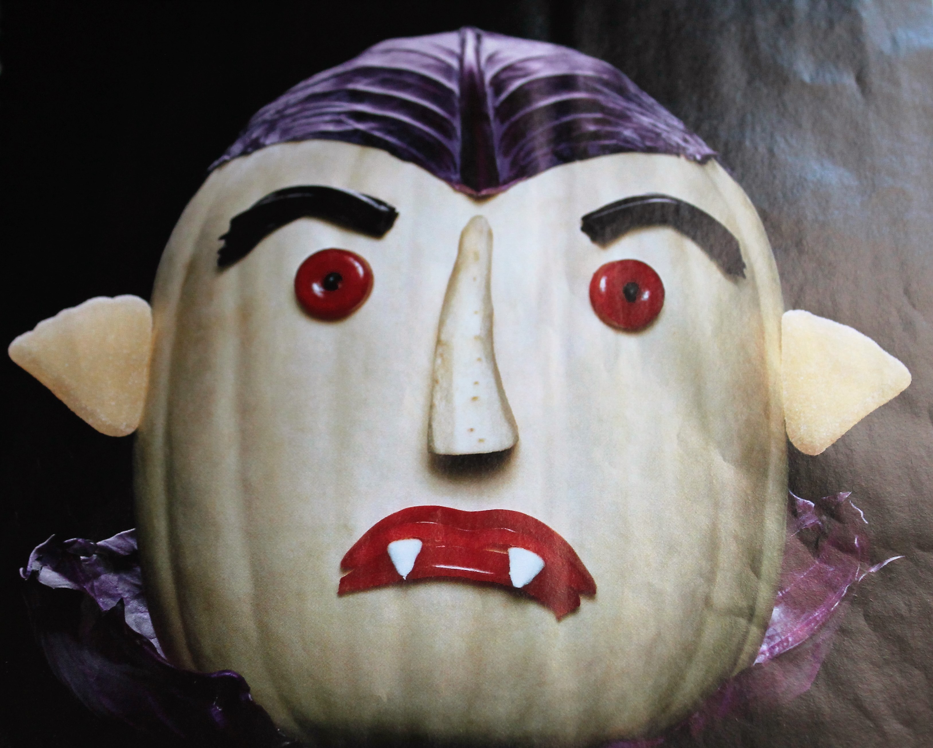 My favor time of year HALLOWEEN! I am a big kid when it comes to picking out my pumpkin. You seach for that right one to decorate so you can have it light up on that scary night. I want mine to be scary and still have fun with the kids in the neighborhood. So I get at least three pumpkins to paint. Check these designs out. Easy to make with vegetables, candy and a hot glue gun.