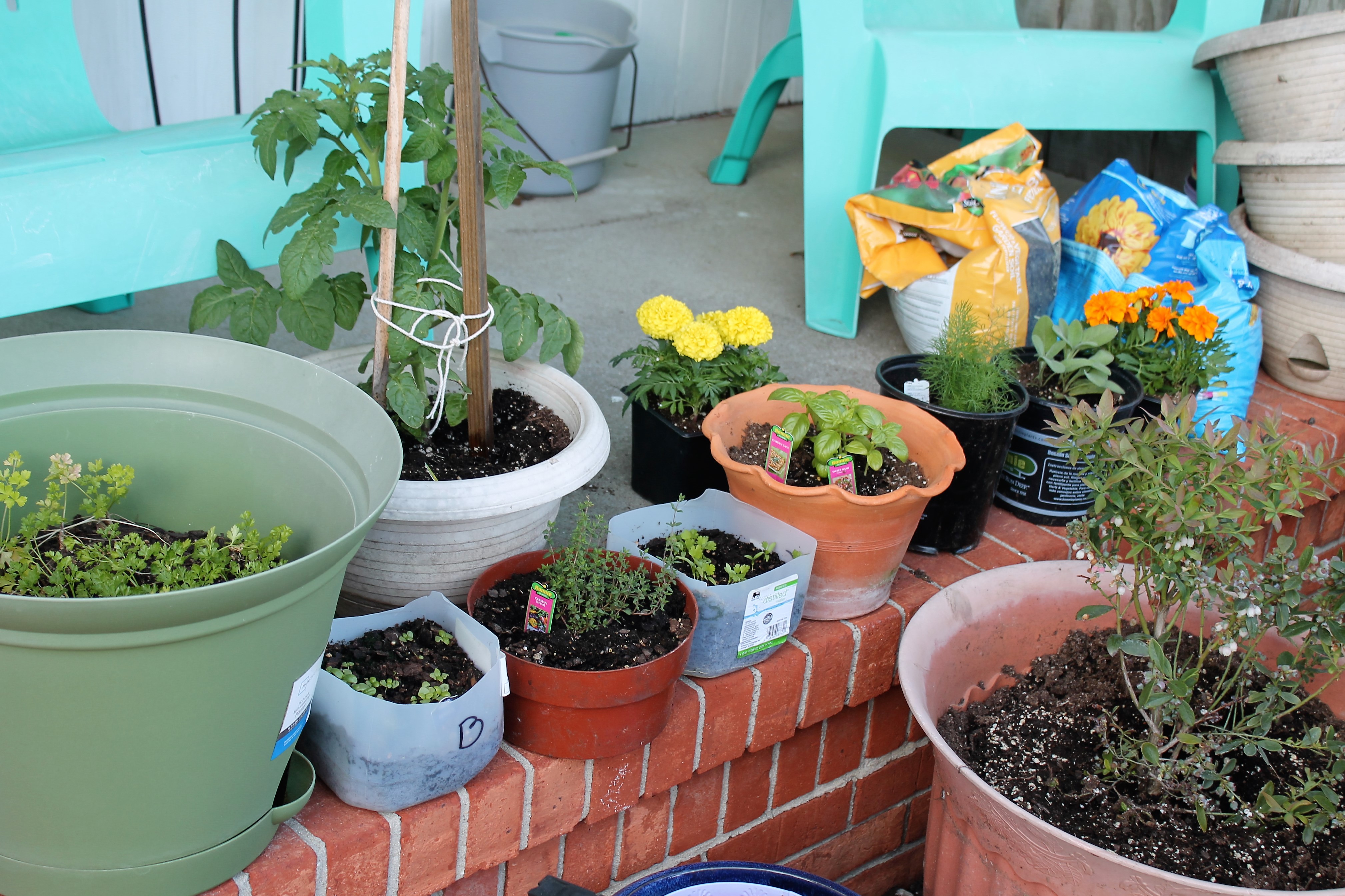 After weeks of grown inside the seedlings are ready to be planted into their pots on the patio. I enjoy having my herbs on the patio, easy to get to and enjoy all summer when I am cooking. I also dry a lot of the herbs and use them throughout the winter. Some of these herbs pots will be placed out in the garden for the summer but for now they stay on the patio.